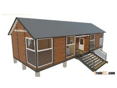 This medium-sized one layer fashionable pre-assembled sandwich panel housing total area is 79.50 sq.m.(855.39 sq.ft.) with 4 rooms.It is used as a villa,dwelling,shop,office,dormitory,restaurant,apartment,garden studio.It can be installed with 3 - 4 construction workers in 5 - 7 days.You also can customize its area size, appearance and layout base on this house,and this building can be used normally at lease 20 years without any maintenance.for more informations,you can browse our website:iprefabhouse.com